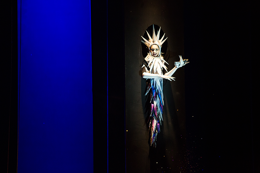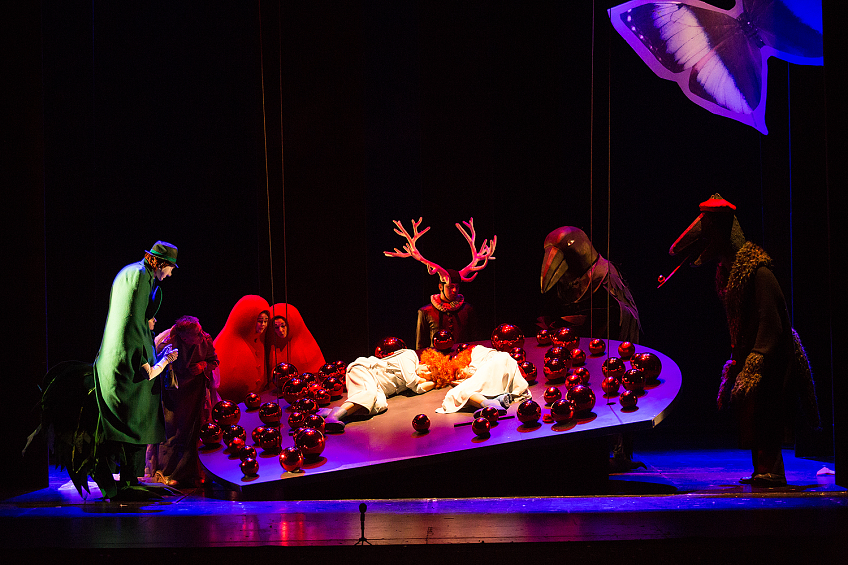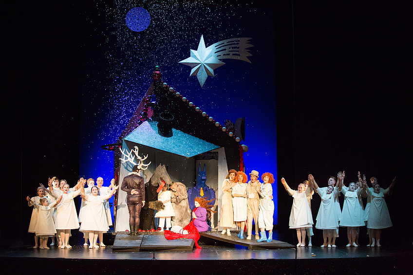 Спектакль адресован аудитории 0+, каждое поколение найдет в нем чему умилиться, испугаться и обрадоваться. Дети радостно галдят при виде волка, который сцапал русалку и утащил за кулисы, а вышел обратно уже с обглоданной косточкой, и замирают, когда тенор Дмитрий Пьянов в образе ведьмы с гротескным бюстом выходит в партер поохотиться на малолетнюю живность. У сентиментальных взрослых слезы наворачиваются на глаза при звуках хора ангелов. Ценители смакуют мелодии, тем более что Екатерина Миронычева и Анна Синицына звонко и чисто поют партии детей, дирижер Андрей Лебедев умело подает партитуру в стиле «Вагнер-лайт», а в оркестре кукует настоящая глиняная окарина.