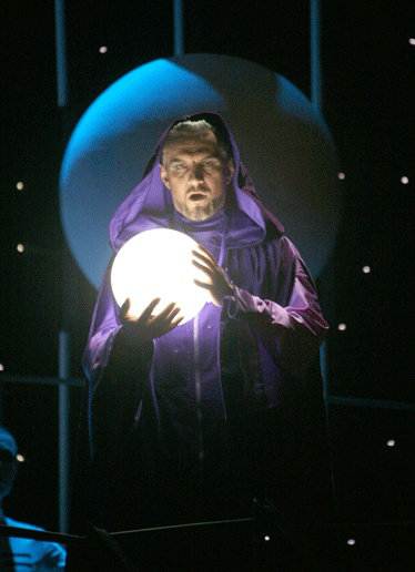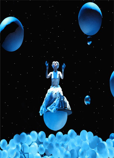 Сценография спектакля решена на контрастах и символична. Звездное небо, шары-планеты, черно-белый мир Иоланты противопоставлены яркой, цветной и веселой реальности, которую от дочери скрывает отец. В счастливом финале эти два мира, конечно же, объединятся.