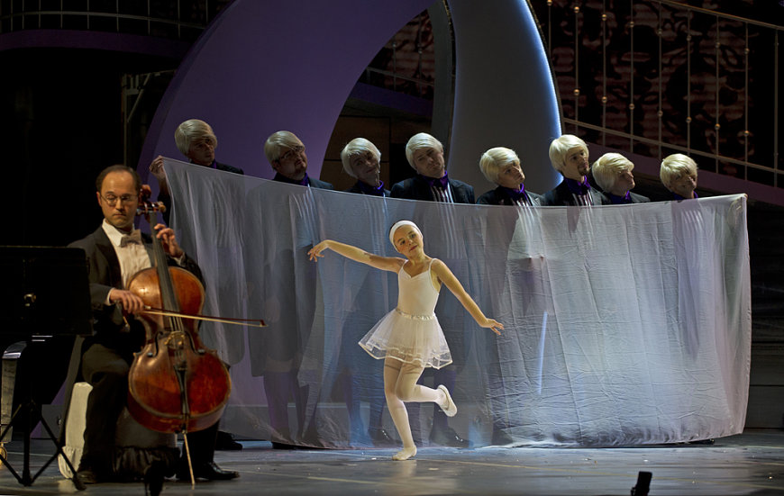 В сценографии используется экран. Это как часть современного интерьера: некий бассейн с плавающими рыбами — то, что себе позволяют сегодня богатые люди. И в этом бассейне будет что-то происходить. Что — пока загадка. Это проекция, которая будет взаимодействовать с реальностью.