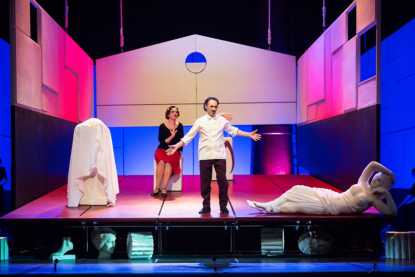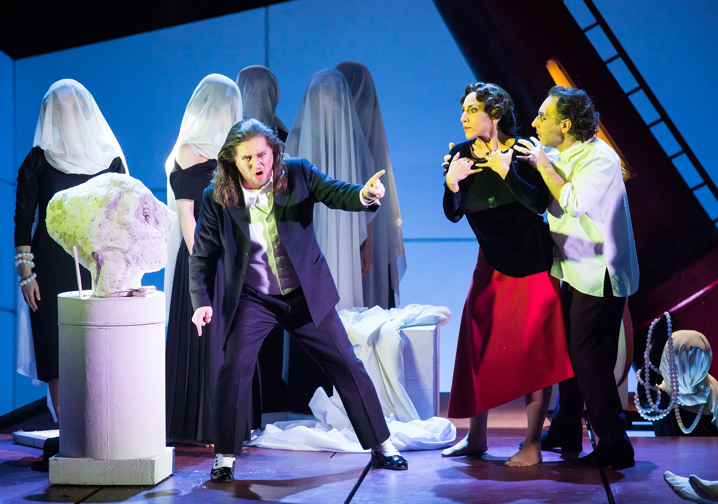 Режиссер Алексей Вэйро не злоупотребляет ни стоячими ариями «в зал», ни плотными близкими мизансценами, ни сложными позами – все это есть, но всего поровну и в меру, ровно столько, чтобы не было суеты и не было скуки. Но и режиссер не торопится расклеивать какие-то конкретные ярлыки и маски, передав это право дальше – зрителю.
