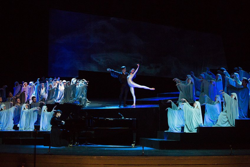 Выдающийся хореограф Владимир Васильев вплел в канву спектакля балетные фрагменты. Тонкие пластические этюды символизируют души двух композиторов, которые то сплетаются воедино, то непримиримы друг к другу.