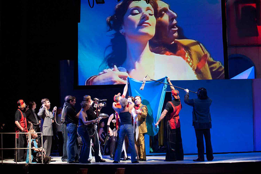 В этом спектакле Кари Хейсканен, театральный режиссер, драматург и актер, проявил себя и как кинематографист. Впервые в музыкальное действие введен прием любительской съемки. К. Хейсканен вручил артистам видеокамеру. Финальная сцена транслируется на белое полотно-экран, усиливая трагическую развязку и создавая эффект присутствия на киностудии.