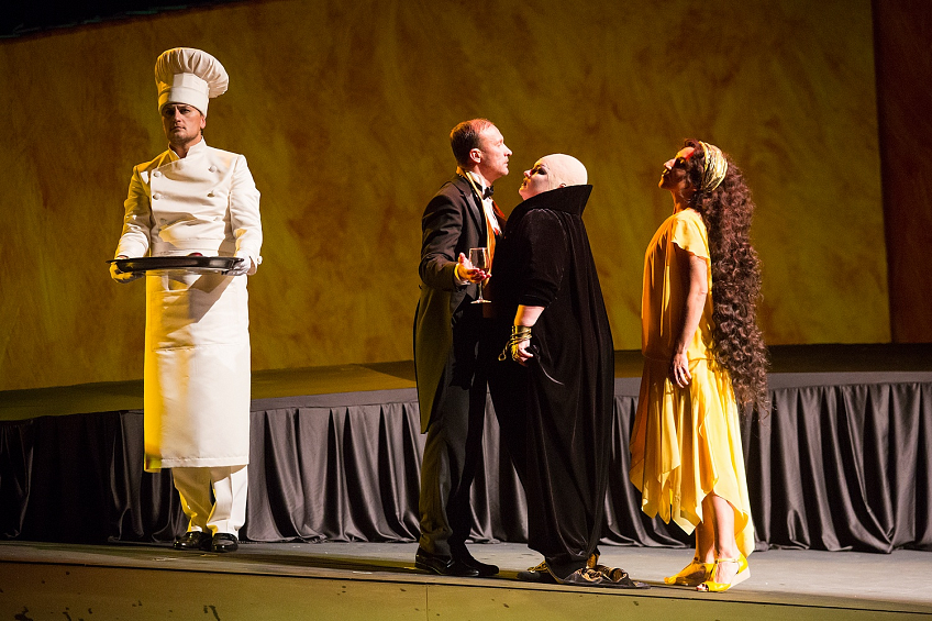 Буквально все исполнители – в первую очередь сопрано Наталья Креслина и тенор Андрей Попов (Саломея и ее отчим Ирод) – работают с такой ответственностью, будто в зале сидит сам композитор.