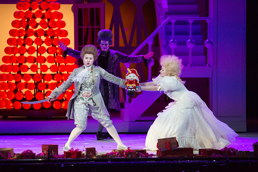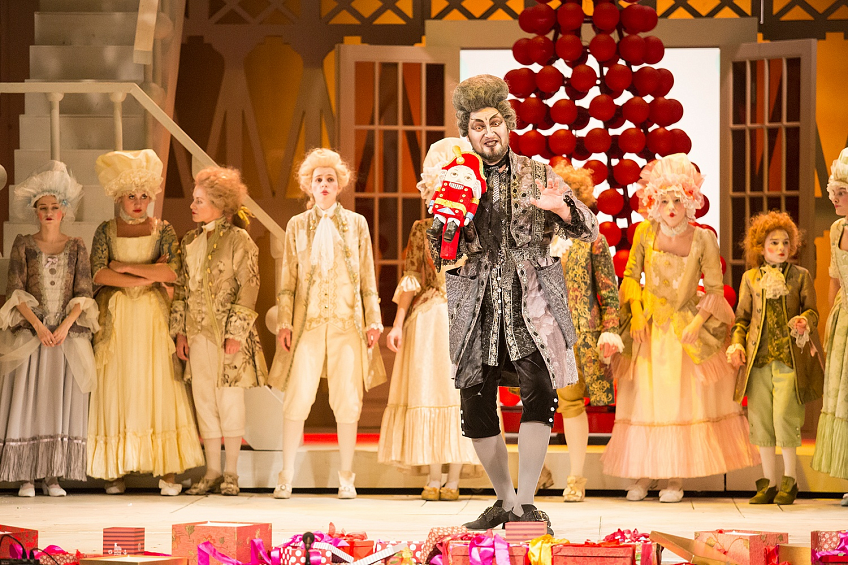 В Новой Опере к новогодней программе тоже подошли креативно: вместо традиционного балета «Щелкунчик» поставили оперу, но на ту же, хорошо знакомую музыку Чайковского. <...> тут дело, главным образом, в сценографии и костюмах Павла Каплевича, который создал фантастическое дефиле по мотивам сказки Гофмана. Отдавая дань балетному происхождению партитуры, в спектакль включили и танцевальные дивертисменты в постановке Аллы Сигаловой. Так что зритель, если он не очень зануден и консервативен, тут получит массу ярких впечатлений и эмоций.