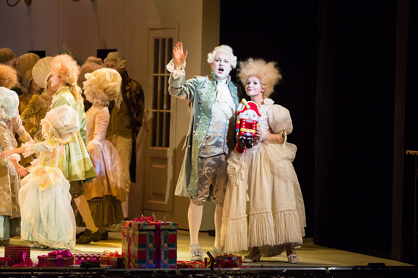 Главным героем по вокальной и сценической нагрузке стал Дроссельмейер. Роль несколько демонизирована и стадия доброго крестного опущена. Это изначально чудаковатый, но грозный колдун, но все-таки добрый. Для роли придумана особая «сказочная» пластика и две арии (в начале второго действия – развернутая). Андрей Бреус – прекрасный Дроссельмейер, и его исполнение, сопровожденное убедительнейшим пластическим решением – одна из удач спектакля.