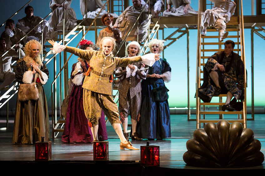 Спектакль получился многослойным, и воспринимать его можно на разных уровнях. На первый взгляд, это легкая, искристая, яркая, действительно шуточная опера, опера-буффа, однако в ней свежо и актуально решена дилемма взаимоотношений художника и власти.