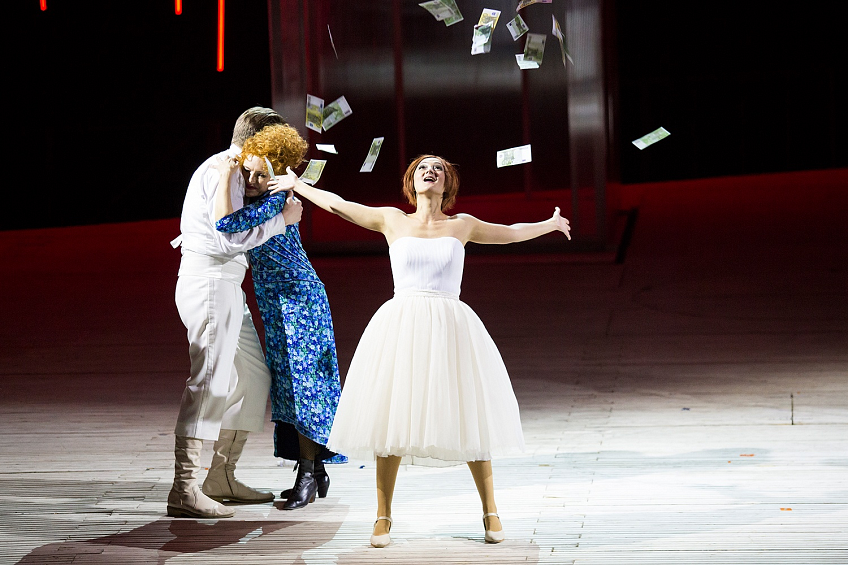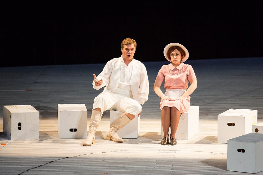 Как выясняется, основания для гордости у «Новой оперы» имеются. Музыкальный результат впечатляет. Оркестр под управлением Яна Латама-Кёнига, хоть и безо всяких жильных струн, играет стильно и легко, совершенно не увязая в кажущейся моцартовской простоте. Клавесин в речитативах (Татьяна Сотникова) позволяет себе мило повыпендриваться. Словно из каких-то заветных сундуков появляется целая россыпь отличных молодых голосов, в первую очередь женских.