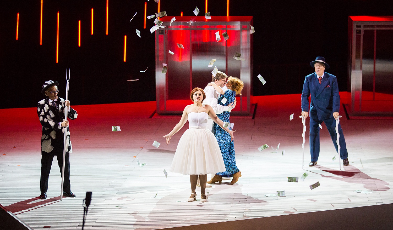Сюжет одной из самых знаменитых комических опер хорошо известен. Постановка Новой Оперы — поиск новых смыслов в знакомой истории. «Выйти за границы комедии положений, увидеть притчу в анекдоте, обнаружить незримые стороны моцартовской музыки, сохранив при этом психологические связи персонажей», — таков главный акцент спектакля для режиссера-постановщика Алексея Вэйро.