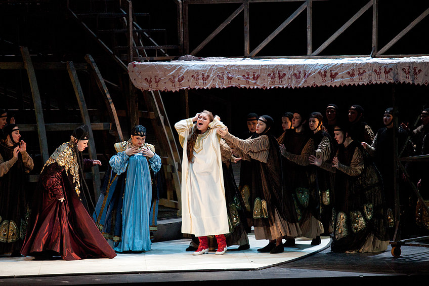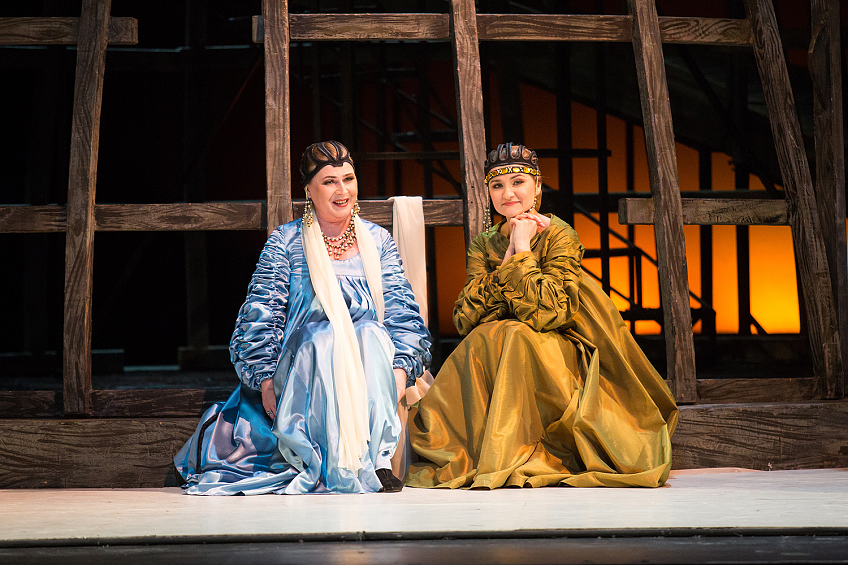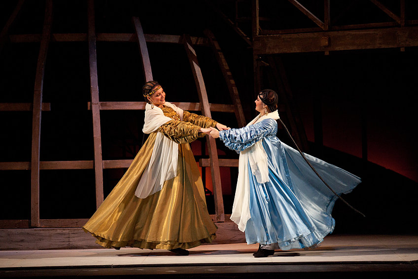 В то же время, это спектакль и о страшных годах России, когда власть творила беззаконие, а человек становился игрушкой в ее руках, о нашей родине, где «над головой простерлось небо, как шатер». «В краях чужих, в чужих землях такое ль небо, как у нас?» – эти слова, сказанные «царской невестой» Марфой Собакиной, Евгений Колобов считал лейтмотивом оперы Римского-Корсакова.