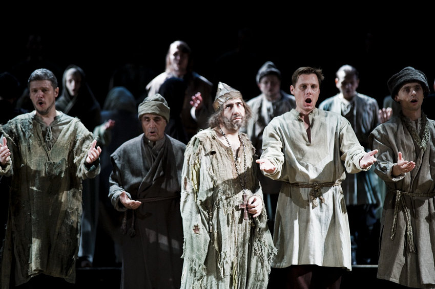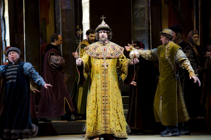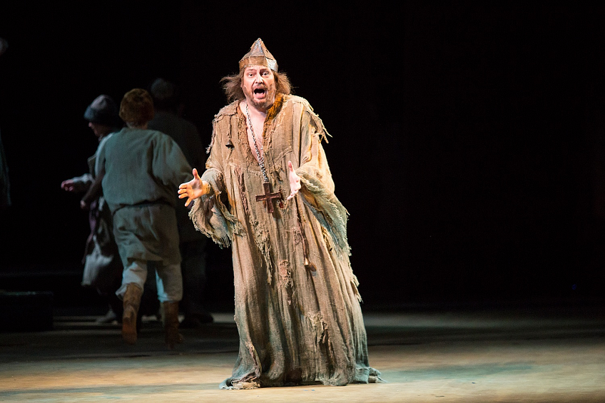 Постановка Валерия Беляковича идеально воплощает замысел Мусоргского, акцентируя внимание на образе главного героя. Зрелищная сторона оперы сведена к минимуму, и это ощутимое отсутствие режиссерского «я» воспринимается как жест глубочайшего доверия к слушателю, композитору и его творению. Тем большая ответственность ложится на плечи солистов, хора, оркестра.