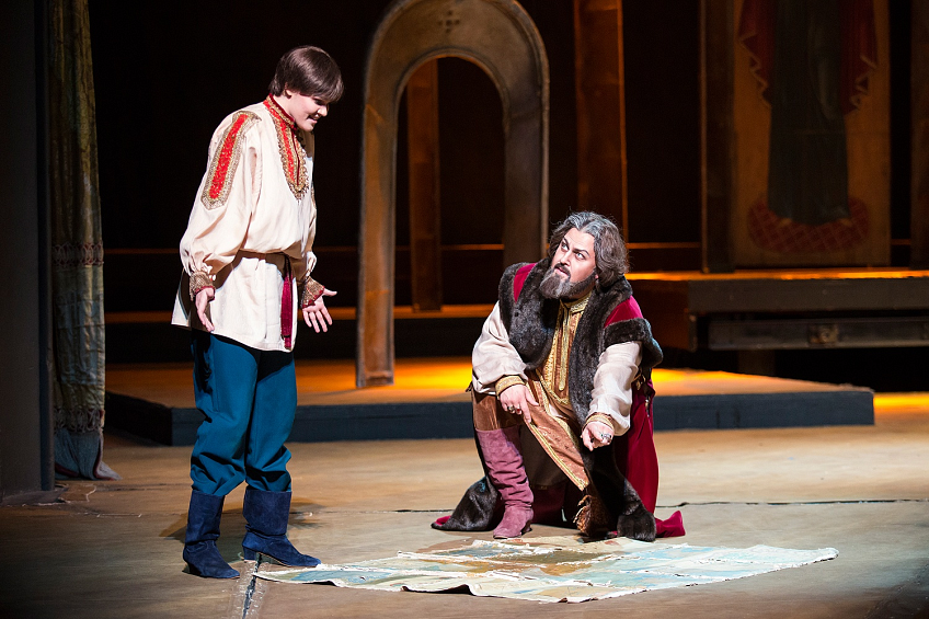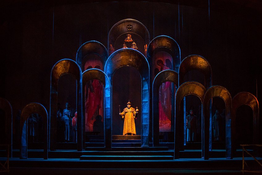 Музыкальным открытием стала премьера оперы «Борис Годунов» – первая редакция оперы М.П. Мусоргского, отвергнутая 130 лет назад оперным комитетом. Все подлинное должно вернуться к зрителям, и театр возвращает не только первоначальный, созданный Мусоргским на одном дыхании вариант оперы, но и факты истории Смутного времени, которые послужили основой трагедии А.С. Пушкина. Герои – не исполненные величия царь и бояре, а люди с трагической судьбой, попавшие в круговорот истории. Стилистика спектакля строга, выдержанна, образна и театральна.