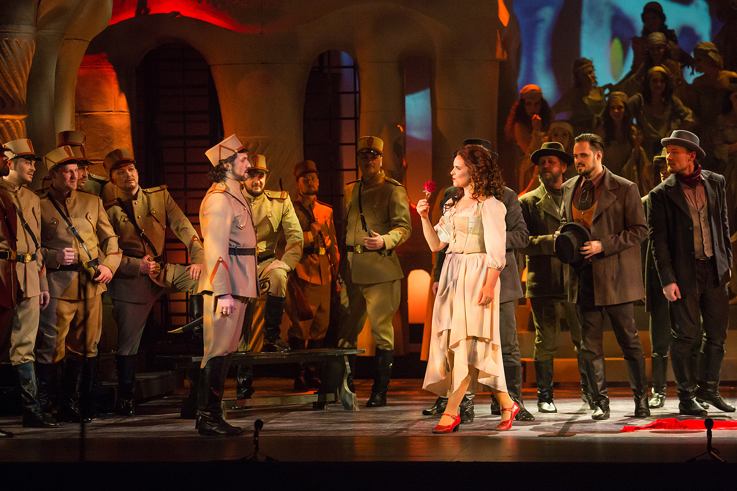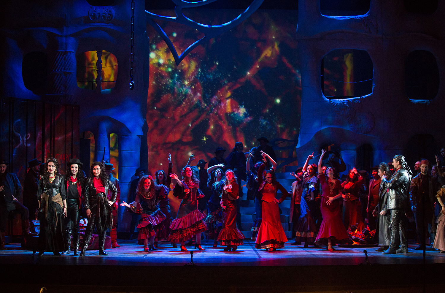 Александр Самоилэ ведет спектакль со страстью, с настоящей любовной нежностью – то, чем обделена титульная героиня, изрядно разлито в оркестре. Несмотря на то, что он декларирует намерение придать испанской партитуре Бизе французской сдержанности, до пастельных галантных красок а-ля Массне дело не доходит, что подкупает: партитура прочитана ярко, витально, сочно, с нее не смыты южные краски.