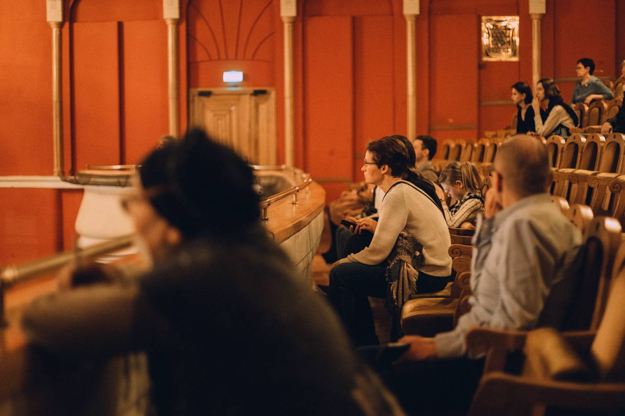 Встреча со зрителями начнётся в 18:00 в буфете театра. Небольшая лекция (продолжительностью около 40 минут) критика и исследователя современного танца Анастасии Глуховой познакомит вас с концепцией постановки, хореографическим и художественным решением спектакля. А в 19:00 вы сможете посетить генеральную репетицию спектакля и первыми увидеть «Кармен в моей голове» на сцене театра Новая Опера.