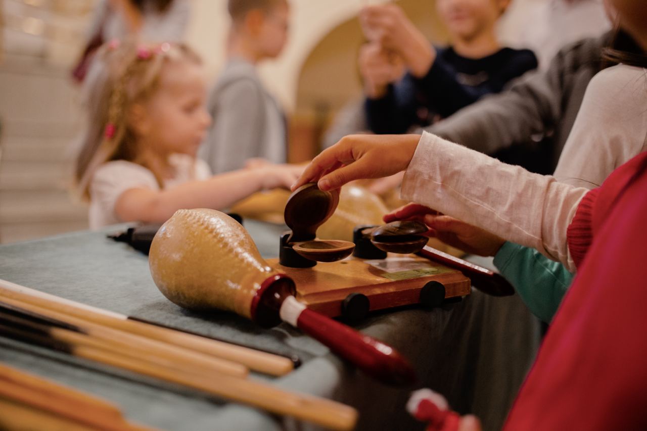 На полтора часа ребята станут подмастерьями оркестра — окажутся в настоящем репетиционном классе, где послушают музыку, сыгранную на разных ударных инструментах, узнают их историю, и даже попробуют ненадолго стать музыкантами-перкуссионистами.