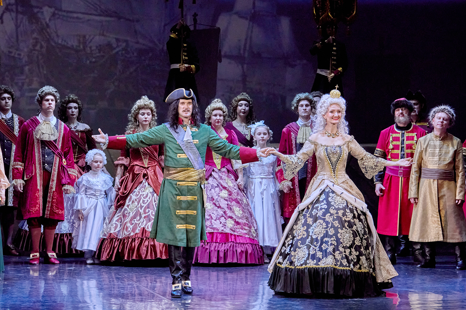 в Полтавской битве и Гангутском морском сражении. Предательство друзей, придворные интриги и заговоры европейских держав не ослабляют, а укрепляют Петра в собственной правоте. Монарх черпает силы не только в любви к своему Отечеству, но и в беззаветной преданности супруге Екатерине. Петр-полководец, победитель обращается к возлюбленной в своих письмах перед каждым важным решением. Тема любви двух великих царственных особ скрепляет всю композицию оперы.