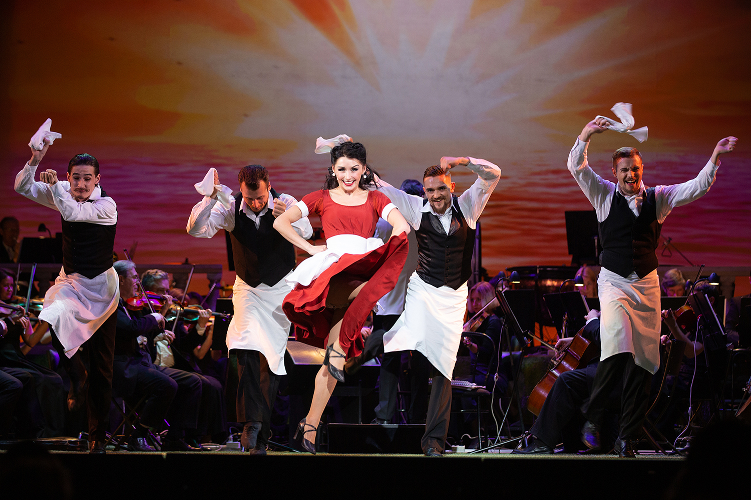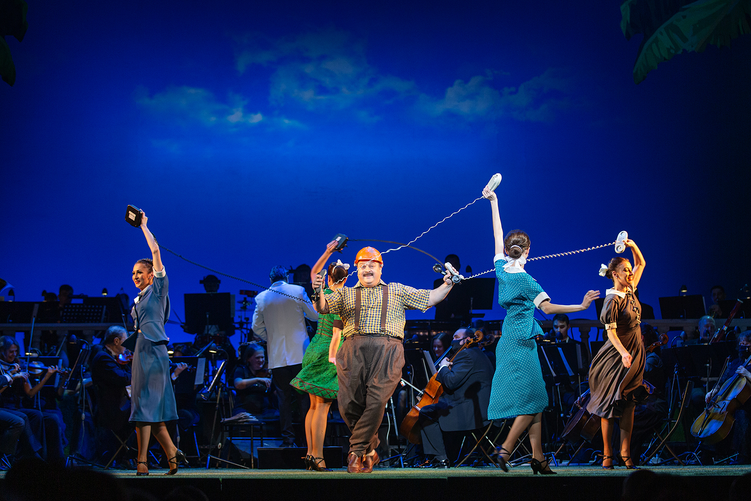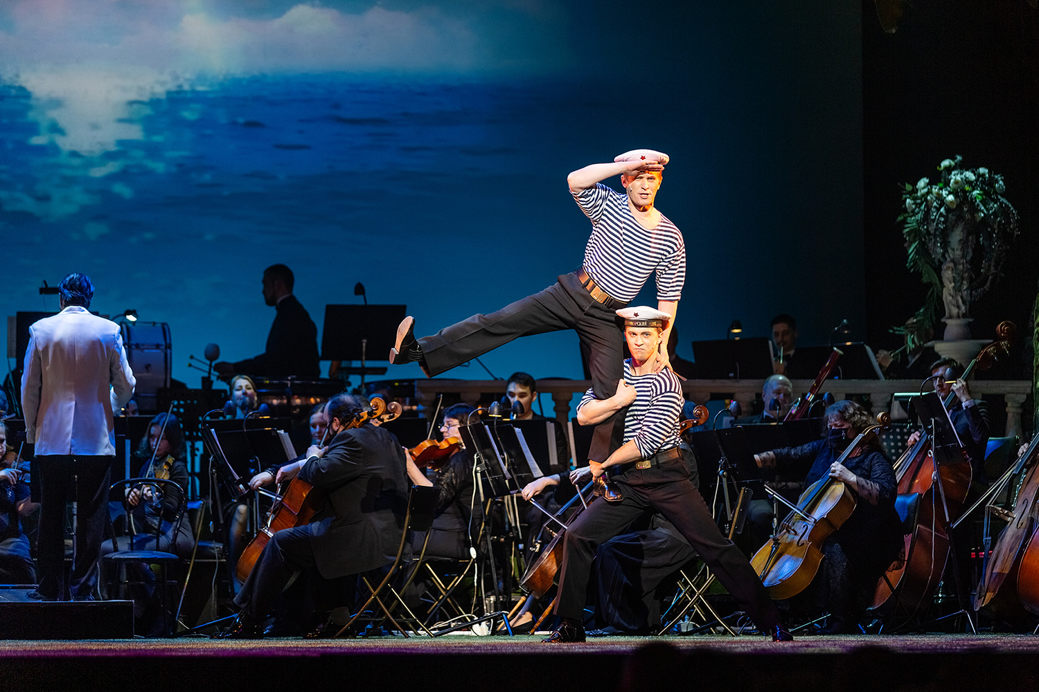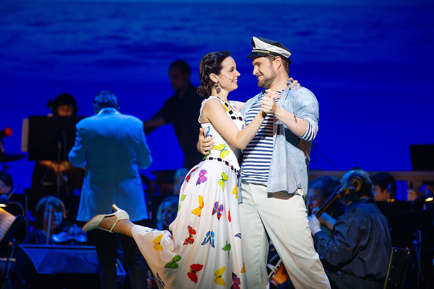 Жизнеутверждающее творчество «певца советского преуспеяния» Исаака Дунаевского вдохновляет и сегодня. С первых же тактов гала-концерта становится ясно, что королева этого представления – талантливая музыка, которую с нескрываемым удовольствием исполняют артисты. Энергичный темп действия, взятый дирижером Андреем Алексеевым, не дает зрителю отвлечься и заскучать. Сценки сменяют друг друга практически без пауз. Здесь есть своя драматургия, это концерт, который мог бы стать спектаклем (режиссер и балетмейстер Владимир Романовский).