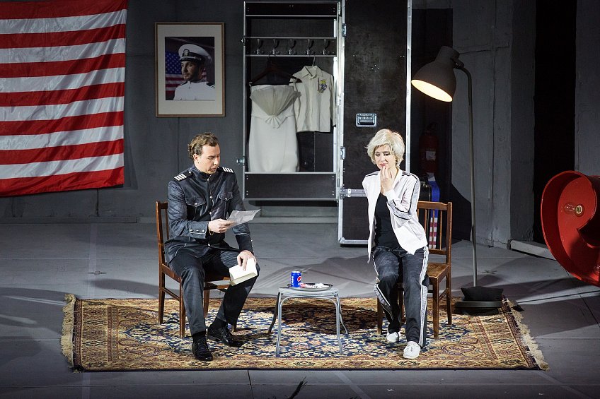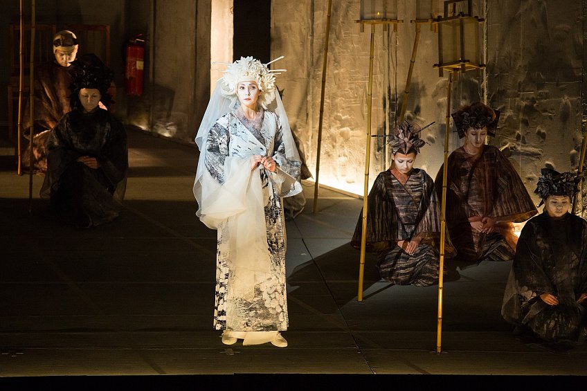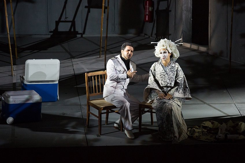 Бетонные стены напоминают бомбоубежище. На сцене примиряют два мира: жесткий, энергичный Запад и мягкий, обволакивающий Восток. Такой внешний минимализм близок и художнику спектакля Павлу Каплевичу, и режиссеру Денису Азарову. В процессе работы над оперой они увидели в ней не только историю о любви и обмане.