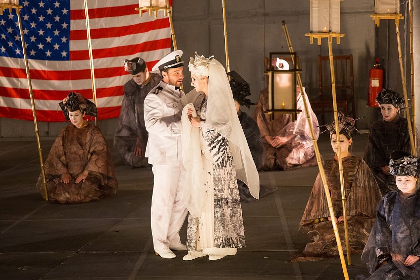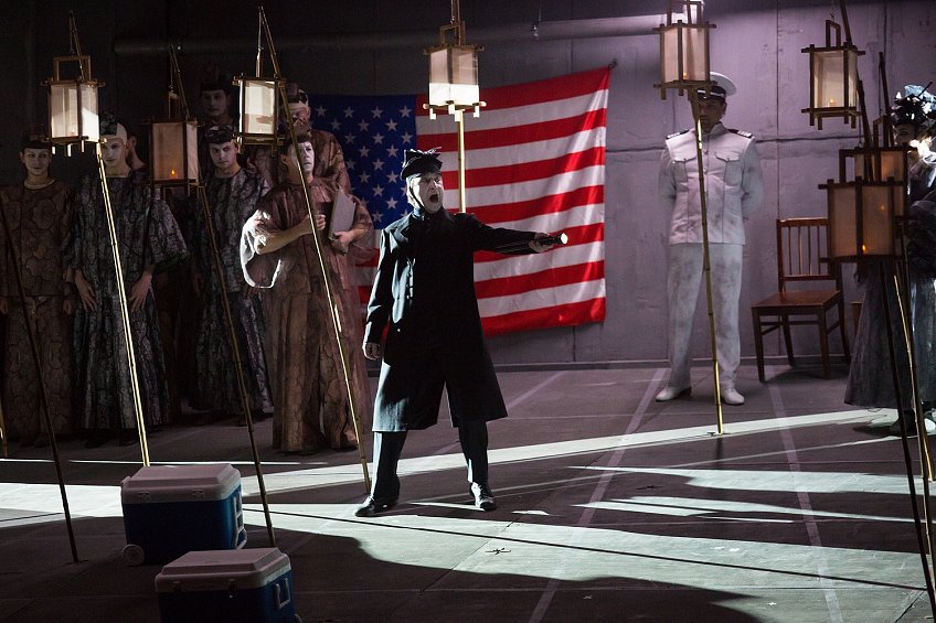 Действие происходит в Нагасаки, месте, которое подразумевает определенный контекст. Мы, постановщики, пытаемся посмотреть на историю, показанную в опере, с дистанции нашего времени. Ведь сюжет «Мадам Баттерфляй» – это история взаимоотношений культуры Америки (или западной в принципе) и японской. Пуччини писал и не знал, что произойдет в будущем, но всю проблематику этих отношений выразил в опере: чужая культура не представляет ценности, это лишь экзотика, приманка для туристов. Через несколько десятков лет это непонимание выльется в чудовищную трагедию со взрывами в Нагасаки.