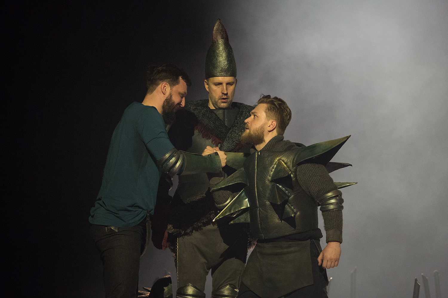 Духовный путь человечества и Христа пропущены через хрупкое тело одной женщины – Лукреции. Она словно чистая слезинка на Его лице. Не случайно ее лейтмотив (Lucretia’s chaste / «Честь Лукреции») – барочная риторическая фигура креста. Она символично обрамлена темами двух мужчин. У насильника Тарквиния это нисходящая тема, которая превращается в финале первого действия в жуткий шаг траурной пассакалии: ансамбль Good night – страшный миг затишья перед ночью, ведущей Тарквиния в его одинокий ад. В партии Коллатина, мужа Лукреции, восходящий ход – не что иное, как тема Тарквиния в обращении.